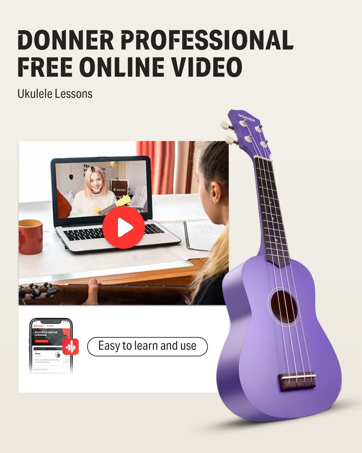 [FREE WEB-BASED CLASSES] Learn to play the ukulele with ease thanks to Donner's free online video lessons for beginners. You can become a better player faster! The Donner ukulele bundle kit is a great set for adults, beginners, or professionals.
