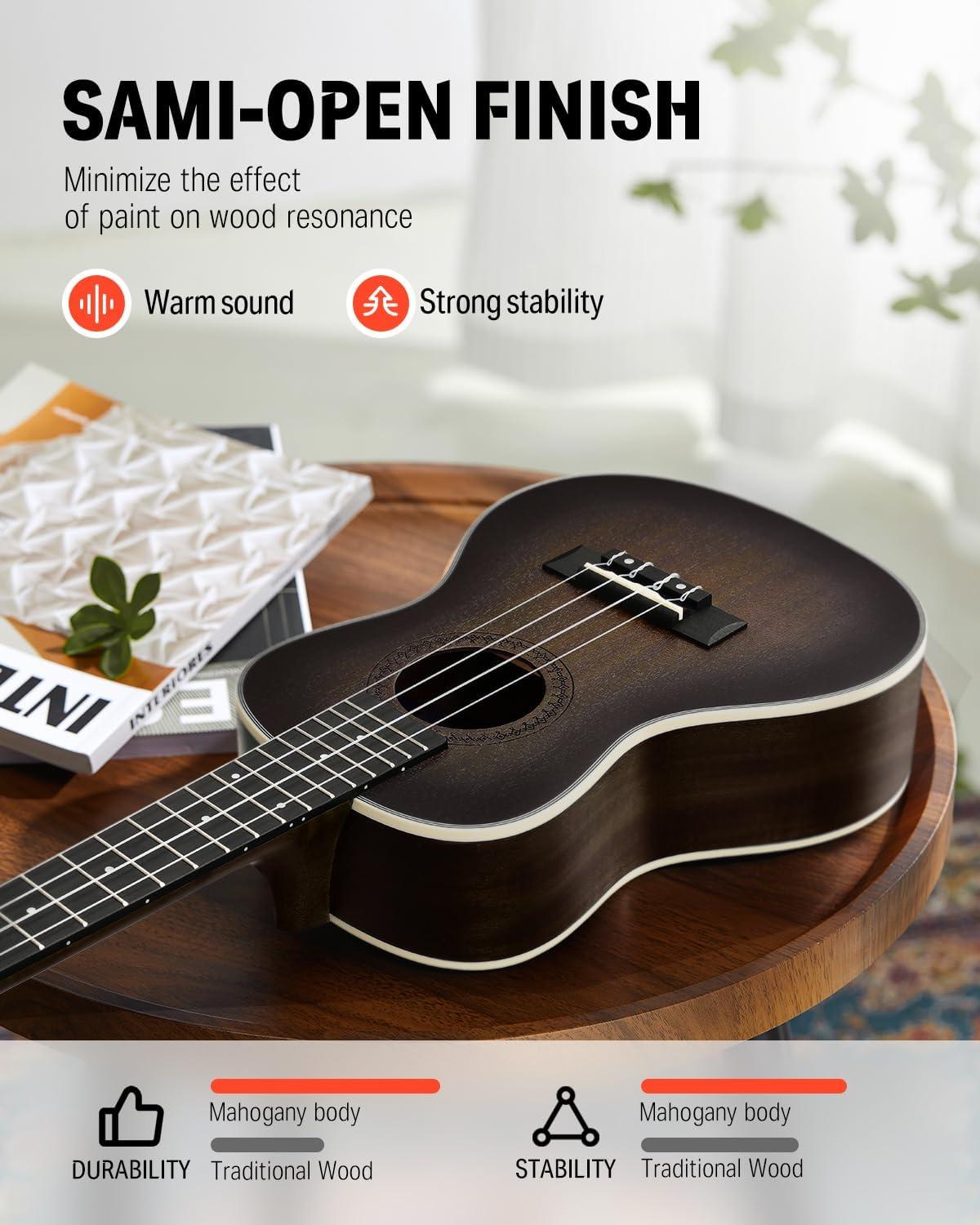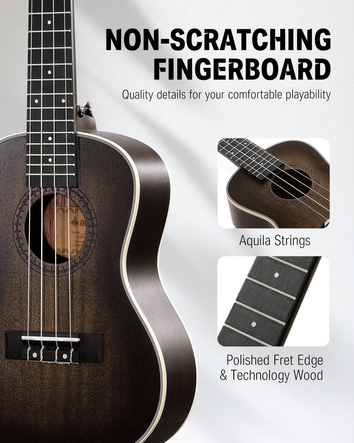 [Warm Rich Sound] Donner Ukulele Mahogany top body and neck bring you a much richer, brighter, and warmer sound; High-density bone nut and saddle combine with 4 Highly polished smooth Aquila carbon nylon strings to gain clear and nice resonance and more sustain.