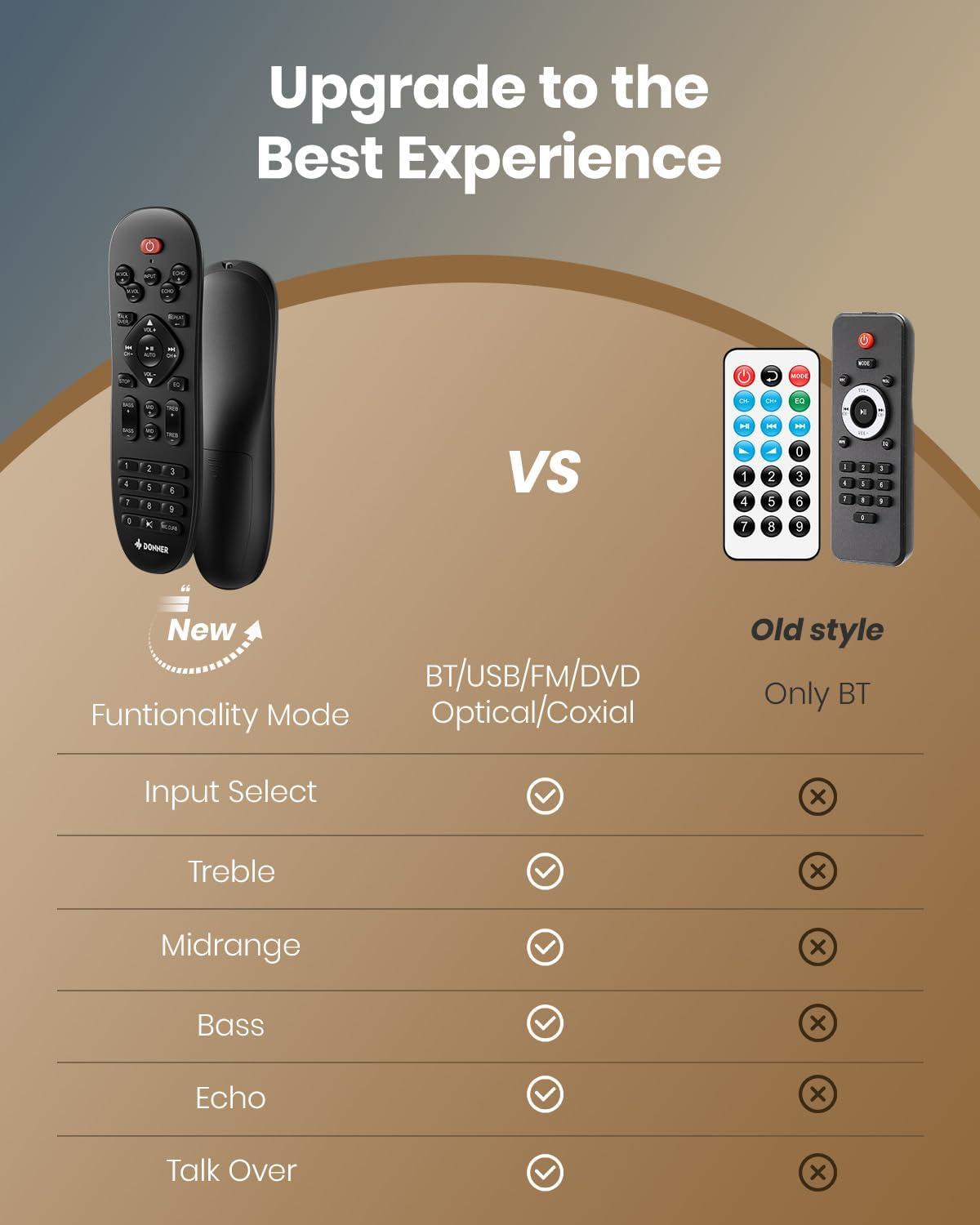 MULTIFUNCTION REMOTE: Without the limitation of a single function, our amplifier home audio comes with an upgraded remote control that can use the setting functions of treble/ midrange/ bass/ echo/Talkover in any input mode