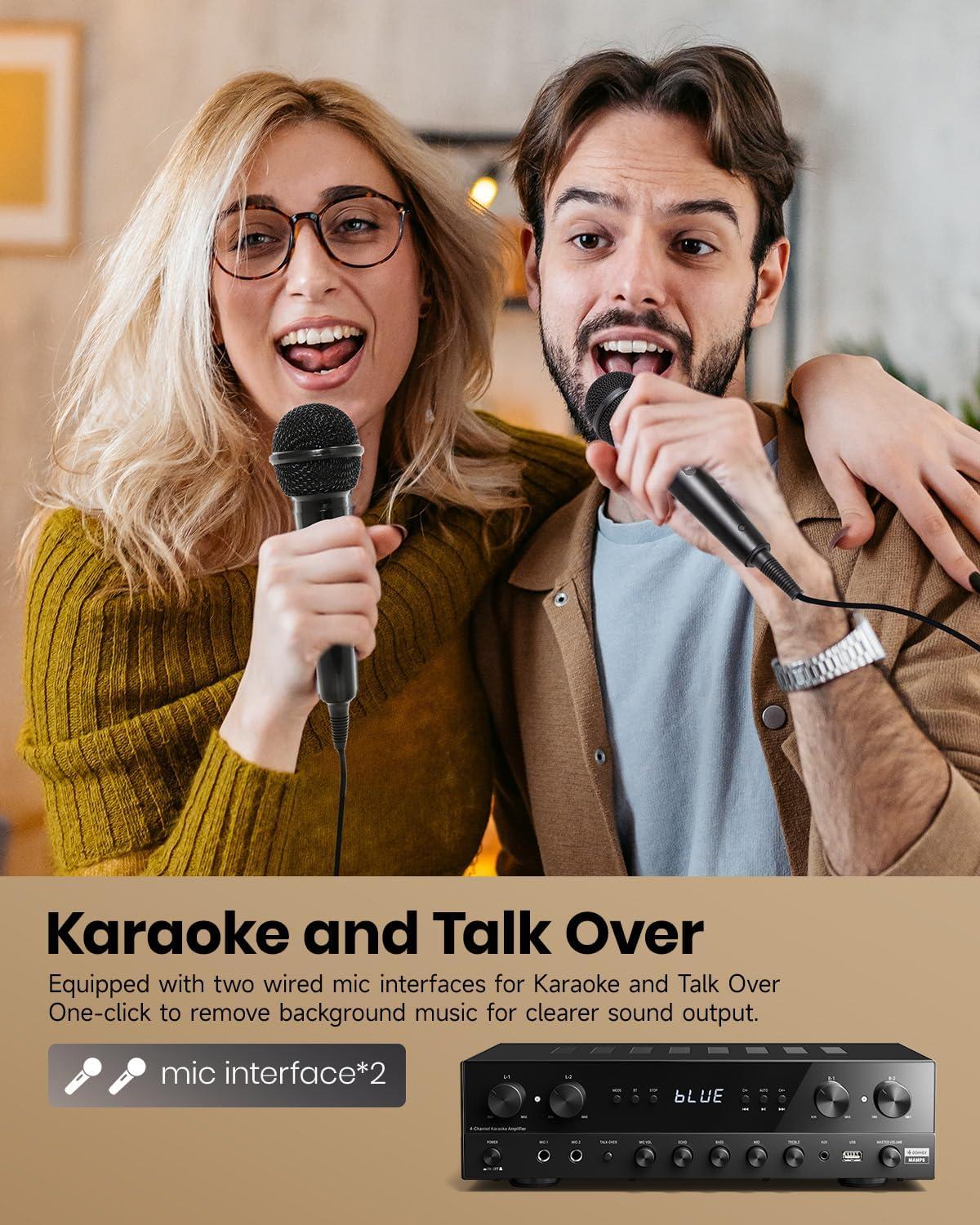 DUAL MIC INTERFACES: Equipped with dual 1/4'' microphone jacks for your karaoke party. Plus the Talk Over function can lower the background music for clearer sound output in events/ hosting/ speech occasions