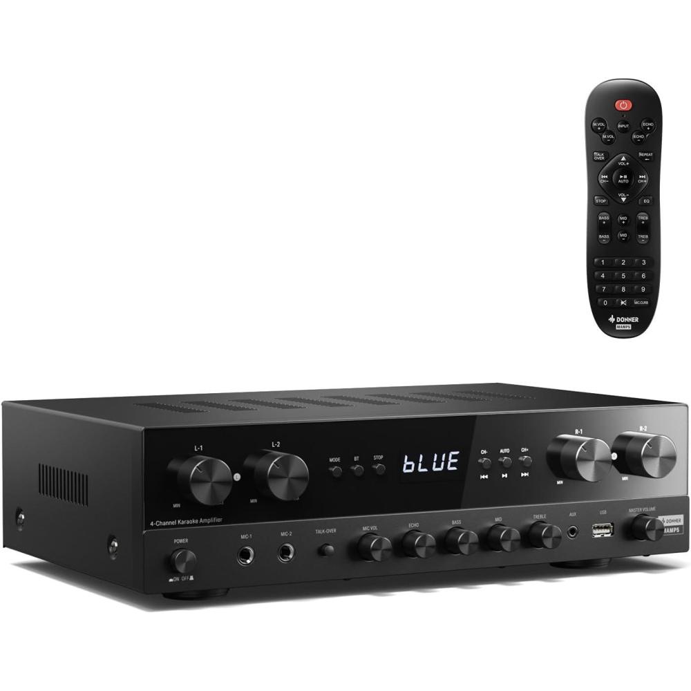 MULTIFUNCTION REMOTE: Without the limitation of a single function, our amplifier home audio comes with an upgraded remote control that can use the setting functions of treble/ midrange/ bass/ echo/Talkover in any input mode ( Note: Turning off the amplifier via the remote does not cut off the power supply. Please disconnect the power supply via the on/off button on the machine after using to avoid humming noise )