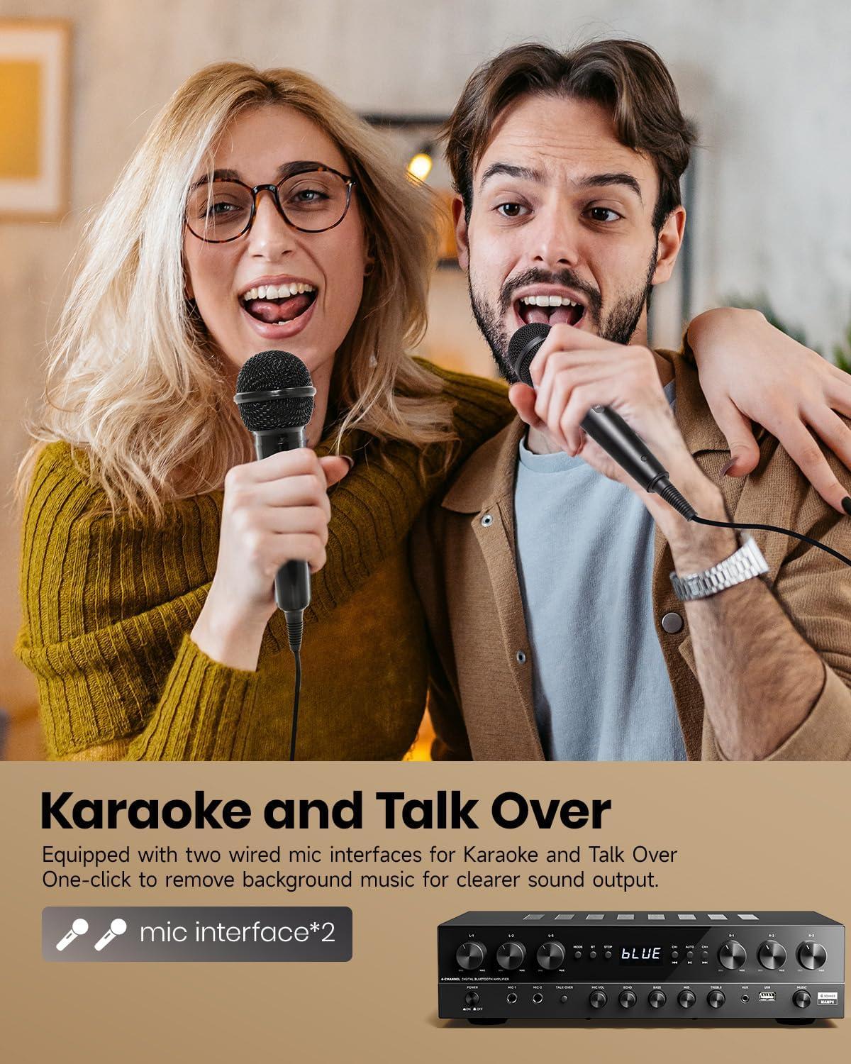 DUAL MIC INTERFACES: Equipped with dual 1/4'' microphone jacks for your karaoke party. Plus the Talk Over function can lower the background music for clearer sound output in events/ hosting/ speech occasions