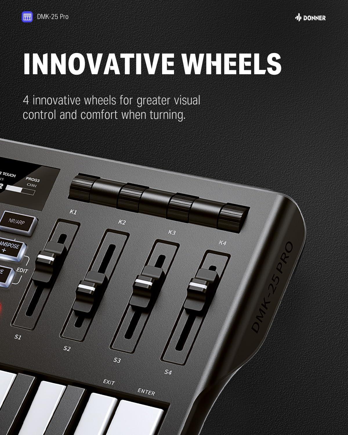 【Real-time Multi-Mode Control】DMK-25 Pro USB MIDI controller unleashes creativity with arpeggio, note repeat, & chord functions. Craft music clips anytime, anywhere. Enhance performance joy & explore endless playability