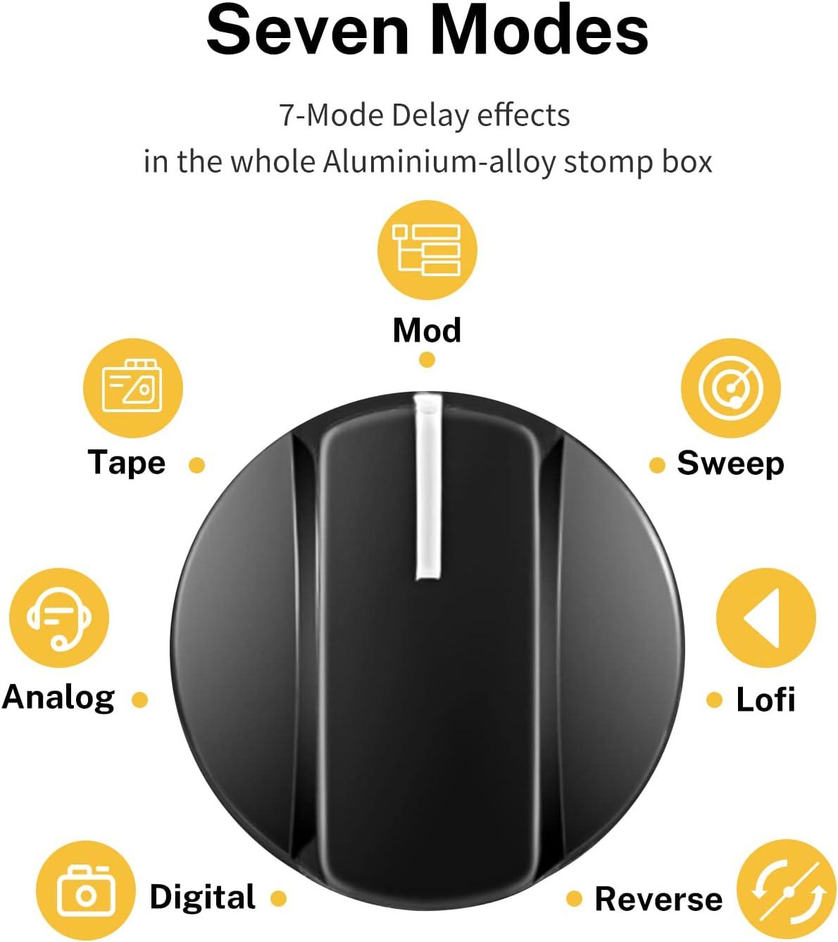 [2 Delay Effect Modes]: Donner Wave delay pedal has warm, pure sound with flexible 2-way mode selector; WARM: A classic warm delay sound; DIGITAL: A pure delay sound