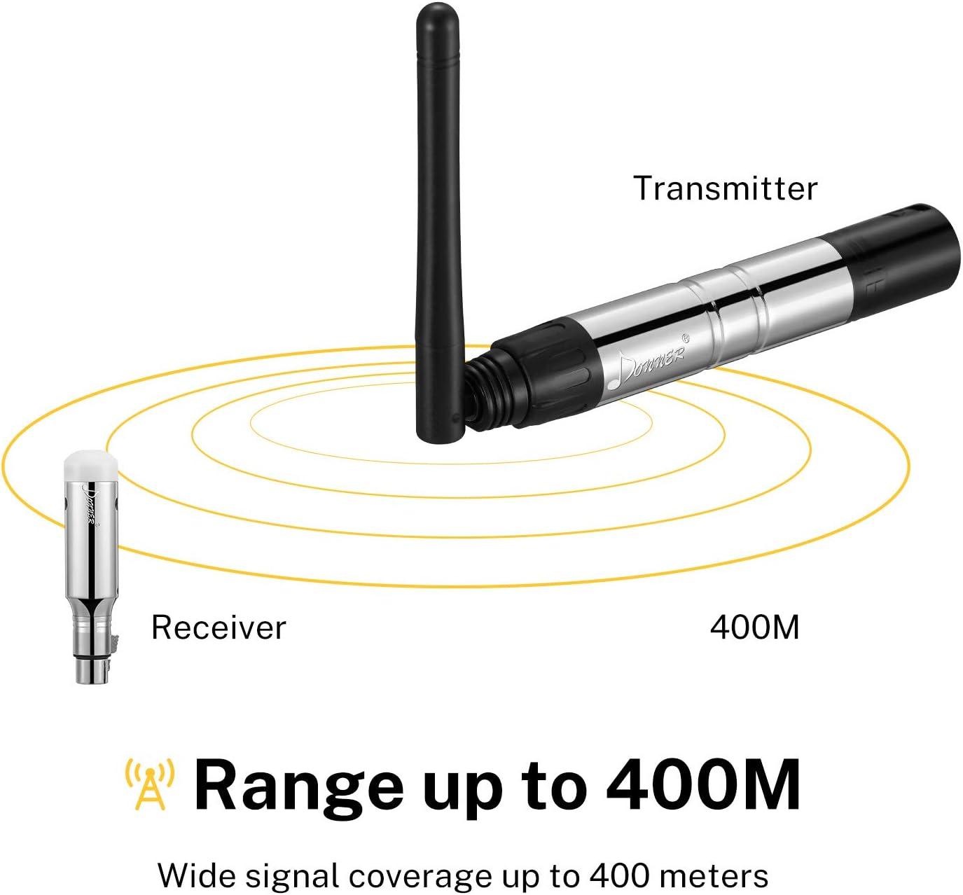 Rechargeable Transmitter/Receiver: Donner Wireless DMX with the rechargeable design reduces the number of power supply sockets required during use. It is more convenient to comb the light signal system, and it is more worry-free when using