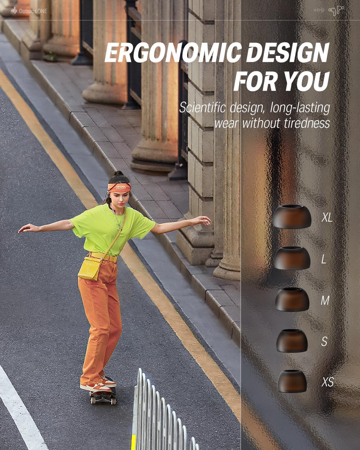 【Rich and delicate sound quality】Dobuds ONE has the perfect combination of a 12mm high-quality dynamic driver and a balanced armature driver to fully support the high frequency range. The hybrid dual drivers make the sound rich and delicate, while releasing plenty of musical details. They will bring you to a Musical journey with high-fidelity sound. Dobuds, dive into Music!