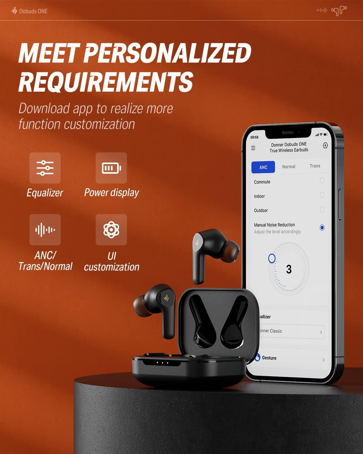 【Donner Control APP】You can download the app to customize extra functions (EQ customization, power display, headphone name, noise reduction transparency mode switching, UI customization, etc.). Meet a variety of personalized requirements.