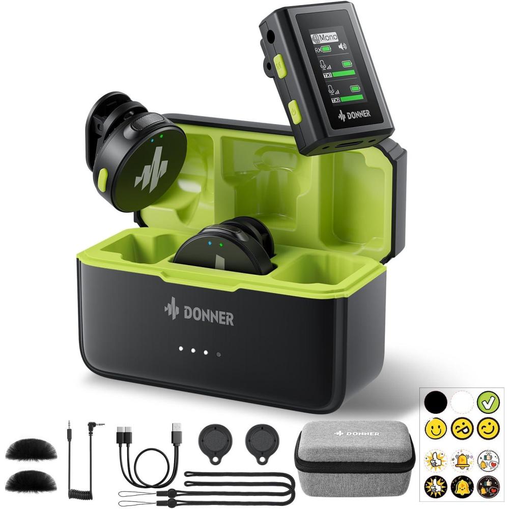 Donner Wireless Lavalier Microphone VPM-20 Camera Vesion, with Charging Box, Dual-Channels Mics, 3.5mm TRS Jack, Plug-Play, 1000ft Range, 48KHz 24Bit, Noise Cancellation, 40h Use Max(VPM-20 Combo)