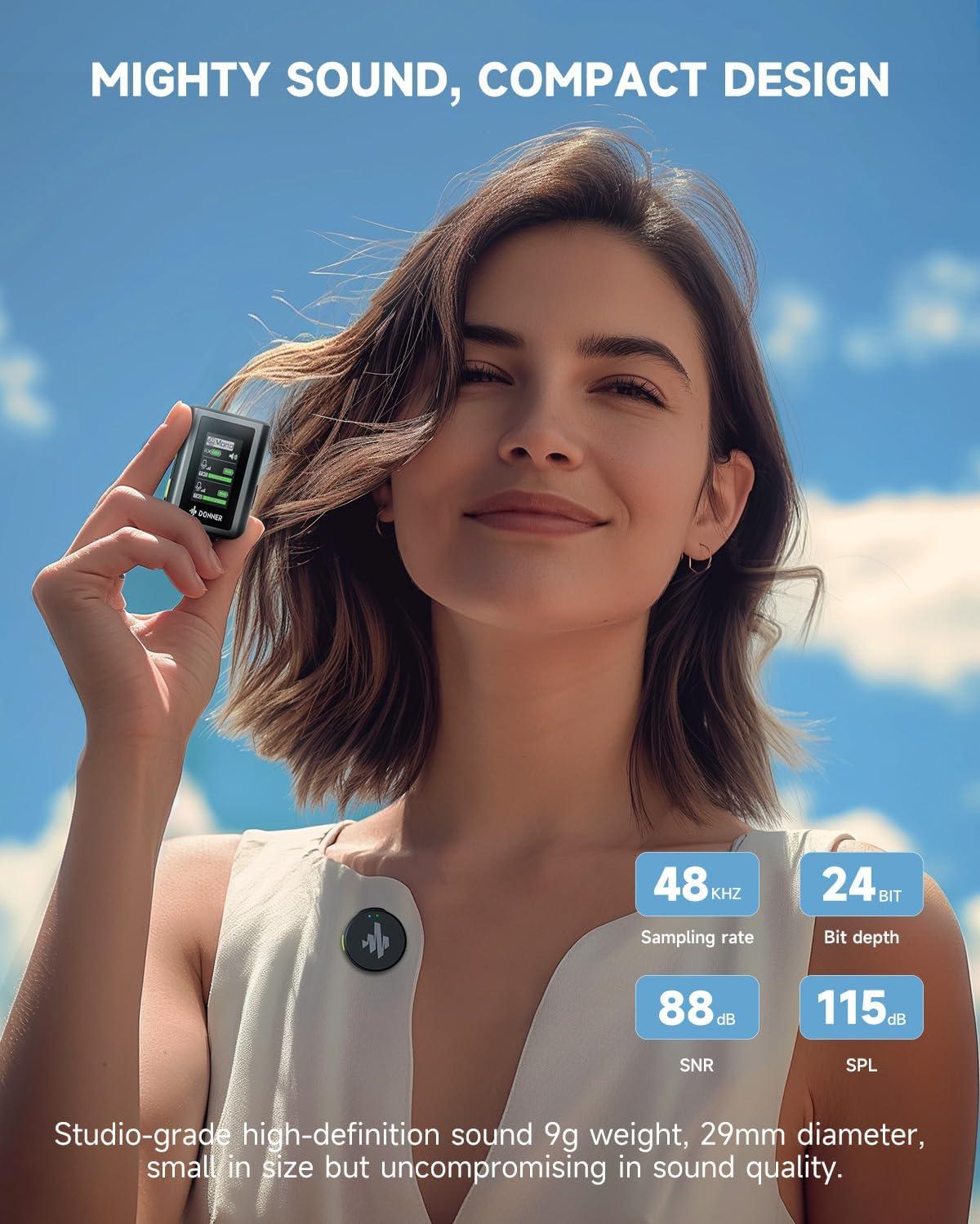 [Ultra Portable, with Newly Functional Display] VPM-20 owns new-upgraded unprecedented functional display which makes your adjustments at a glance. It features portability and extensive compatibility. Two Lavalier Microphones are only 9g in weight and 29mm in diameter each. It's equipped with 3.5mm TRS interfaces for camera, compatible with various camera devices. The plug-play let you start creating without worry.