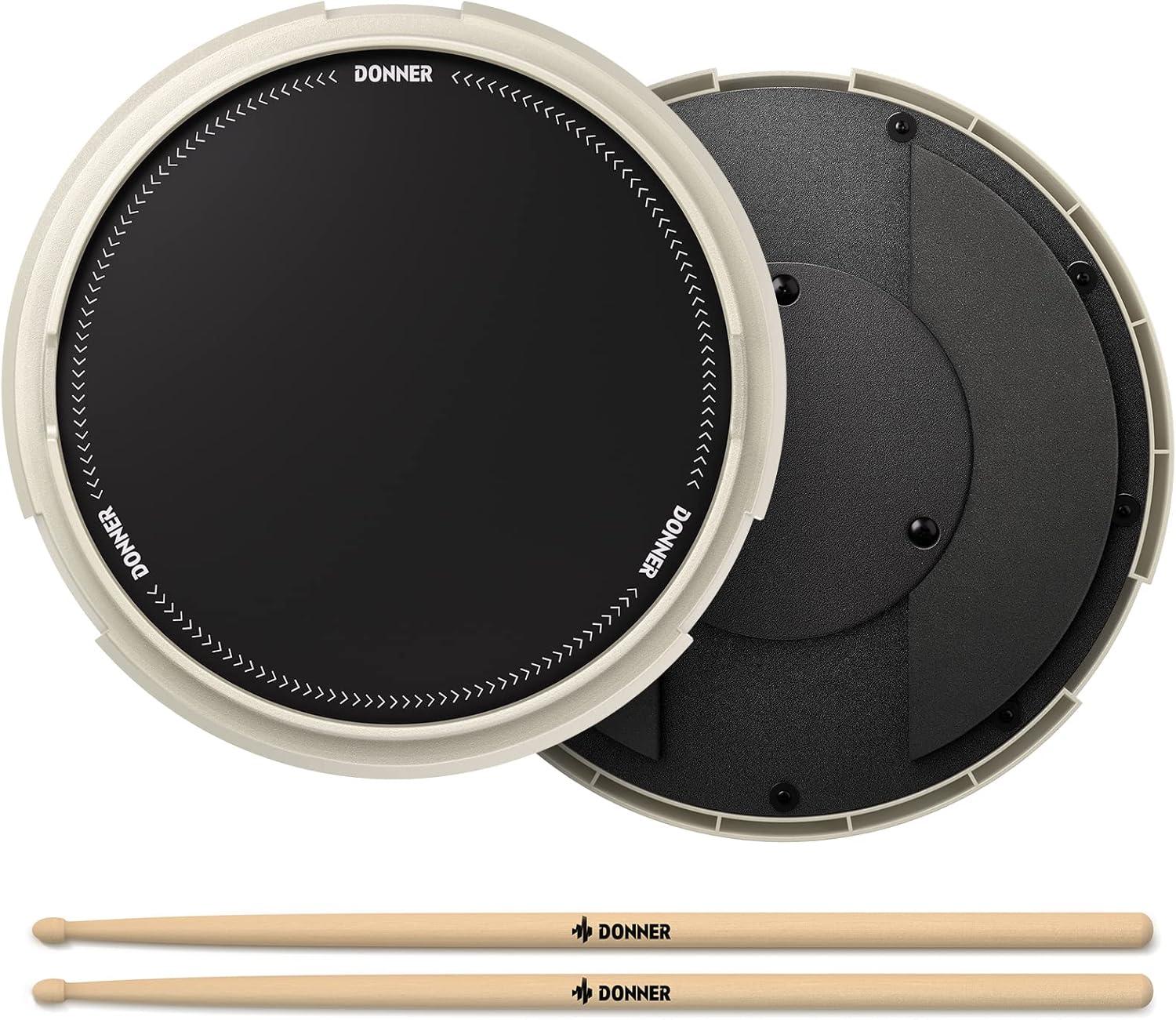 imageDrum Practice Pad 12 Inches Donner Quiet Drum Pad with Removable Snare Simulation Builtin 800 Steel Balls Drum Sticks 40 Standard RudimentsBlackWhite