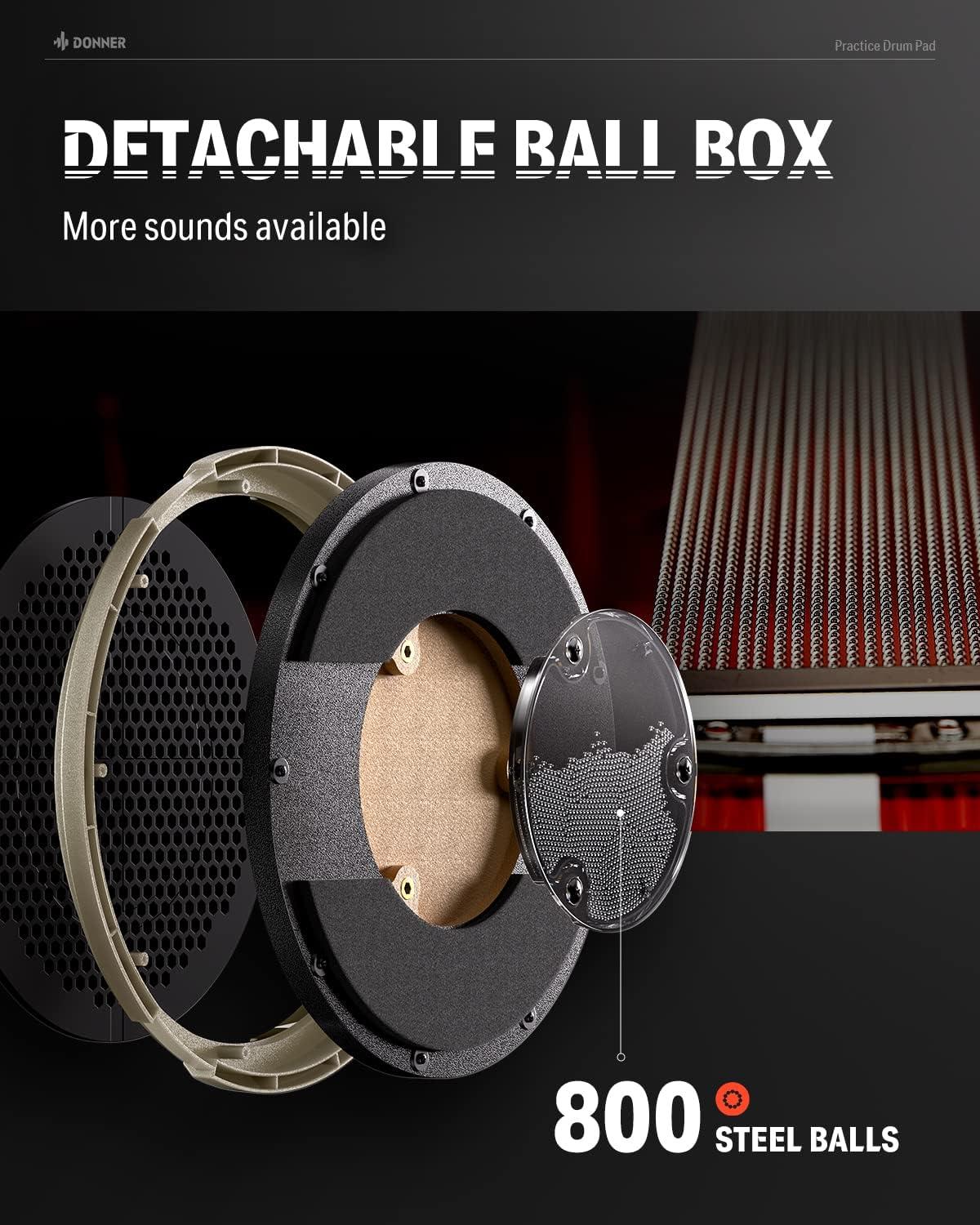 [Simulated Snare Sound] This drum pad is equipped with a detachable snare simulator containing 800 steel balls which simulates the sound of a real snare drum and makes it more immersive